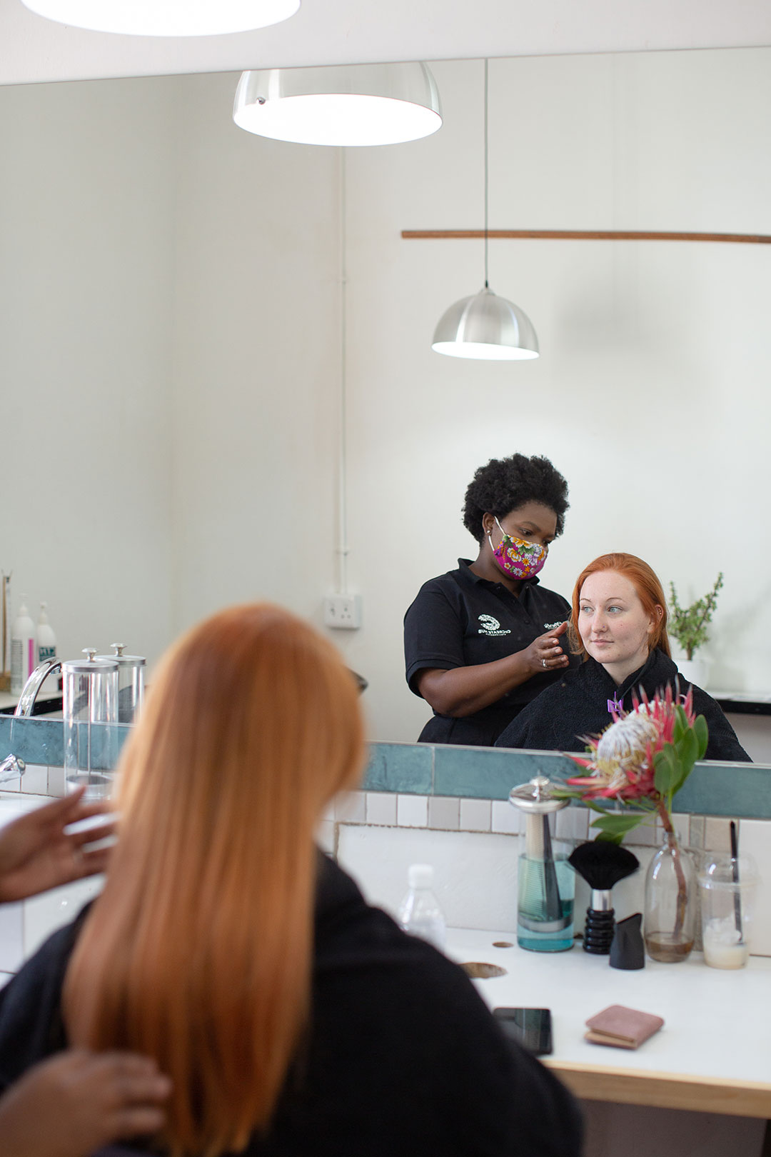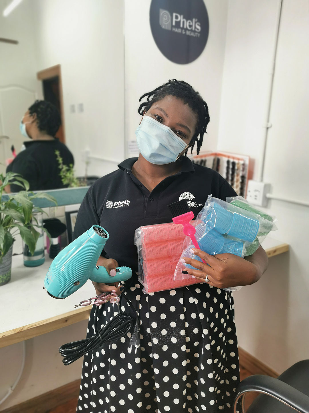 When asked what the favourite part of her job is, Phelisa immediately says, “Highlights!” before going on to explain that with her training and work experience, most of her clients are Caucasian and so this is where her expertise is, even though she occasionally works with other hair types. She says that she is keen to keep on learning so that she can get better at working with more hair types. By doing this, her skills will continue to grow and she will gain new clients.